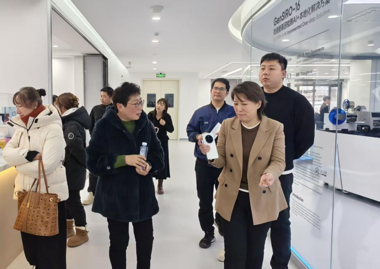 系部一行参观了企业的现代化实验室和研发平台,详细了解公司在基因检测、精准医疗等领域的技术优势和人才需求情况。双方围绕学生实习安排、产教融合、校企深度合作以及“1+X”证书培训等方面进行了深入交流。